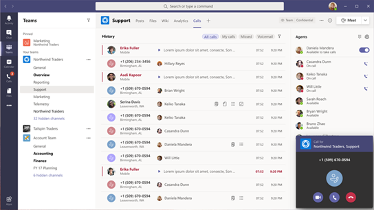 Collaborative calling connects inbound calls to a queue within a Microsoft Teams channel. Team members within a specific channel can chat, collaborate, share files and make calls simultaneously. Admins can connect call queues to specific channels and team owners can manage settings and permissions.
