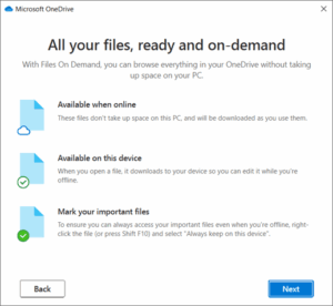 Next, the All your files, ready and on-demand screen will appear. This screen will explain how files are marked according to their availability status.