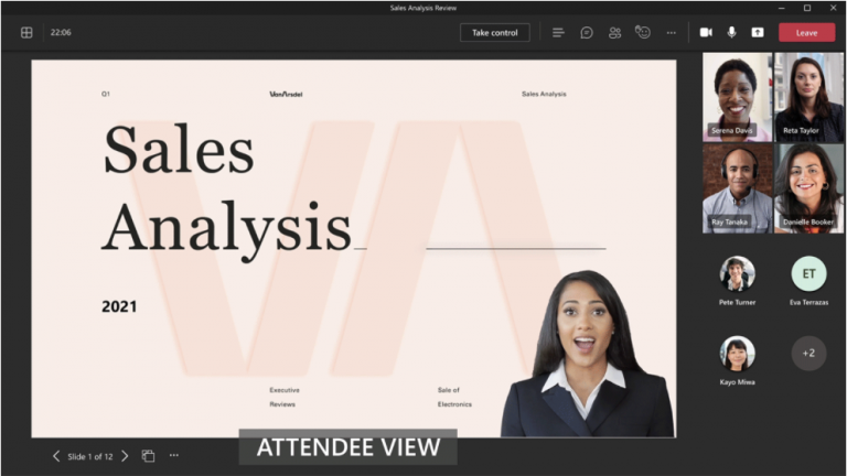 Microsoft Teams meeting presenters can now customise how their content is displayed for meeting participants, including overlaying their video on content using the Standout layout. This allows for a more dynamic content viewing experience where presenters can easily direct their audiences’ attention through hand gestures and facial cues, without making the viewer choose between the speaker and the content.