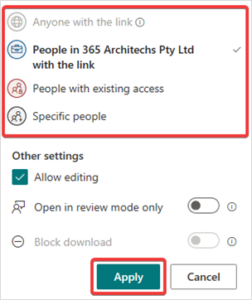 Alternatively, select Copy link to paste into an email, Microsoft Teams message or another app.
