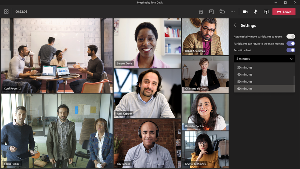Microsoft Teams meeting organisers can now use a countdown timer in the breakout room feature. This feature enables organisers to set a timer to control how long a breakout room lasts. Participants can also see the timer counting down within their breakout rooms. When the time is up, all participants will automatically be called back to the main meeting room.